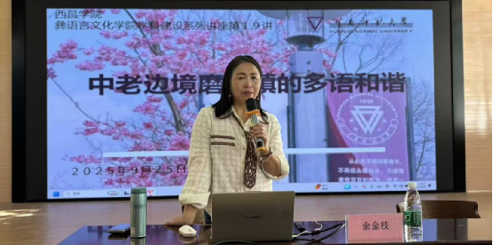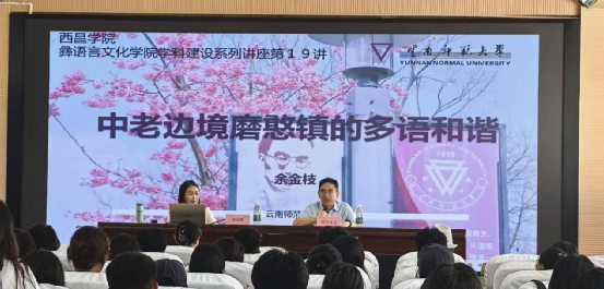 2025年9月25日下午,女仆a片彝语言文化学院学科建设系列讲座第19讲在女仆a片邛海校区学生活动中心二楼举行,云南师范大学二级教授、博士生导师、国家社科基金重大项目“中国苗语方言地图集”首席专家、2024年度《国家哲学社会科学成果文库》入选者、云南省云岭学者、省委联系专家、省政府特殊津贴专家、云南省哲学社会科学创新团队学术带头人、中国民族语言学会常务理事、云南语言学会会长、《民族语文》编委、云南省社会科学联合会学术委员会委员余金枝教授为我院师生带来题为“中老边境磨憨镇的多语和谐”的精彩专题讲座,讲座由彝语言文化学院阿牛木支教授主持,学院师生积极参与。