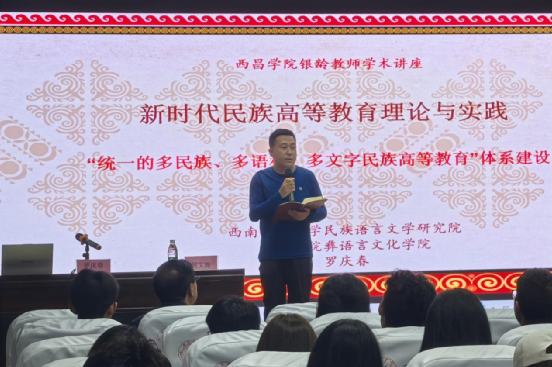 2025年10月16日19:00-21:00,彝语言文化学院在邛海校区学生活动中心举办学科建设系列讲座第24期。本次讲座西南民族大学民族语言文学研究院教授、女仆a片彝语言文化学院银龄教师罗庆春主讲,何文海教授主持,主题为“新时代民族高等教育理论与实践”。