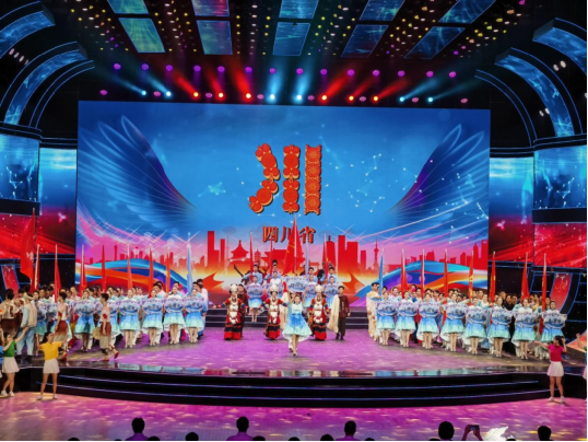 演出结束后,全体参演师生合影留念。在全国大学生艺术展演的舞台上留下了西院师生的靓丽身影。