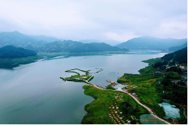 雅女湖又称瓦屋山水库,位于瓦屋山麓。海拔1080米,水域面积达15平方公里,湖长19.04公里,湖宽13.31公里,水均深16米,是一座以防洪为主,结合灌溉、发电、养殖和旅游等综合利用的人工高山湖泊。境内四面青山画屏,半山云雾缭绕,湖面碧波浩渺,此山水交融,倒映着天光云影,是山与水的绝美交响。