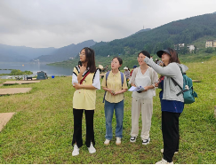 湖泊周边生态环境优美,植被丰富,群落结构复杂,除人工种植的向日葵外,原生地植被以禾本科及杂类草等多年中生草本植物为主。植物地理学小组在李群老师的讲解下,对隐域性植被与显域性植被进行区分,并对雅女湖湖边植被开展植物群落采样与调查,总结瓦屋山海拔1000米以下植被特征。气象气候组小组与余江老师针对雅女湖的作用及瓦屋山对水汽的抬升作用进行了探讨。