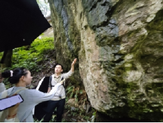 瓦屋山被誉为“人间天台”,其桌状的断块山形态,让人惊奇,是新生代以来被断裂围限强烈抬升的断块山地,顶部为玄武岩。在低山区沿途,能观察到很多二叠系阳新石灰岩及下古生界碎屑岩、碳酸岩。黄仁波老师教同学们如何使用地质锤和使用罗盘测量岩石的产状,观察稀盐酸与白云岩的气泡反应判断白云岩中的钙成分。在这实践中感受到了自然的历史遗迹,让同学们对自然更加敬畏。