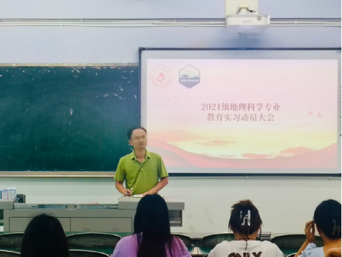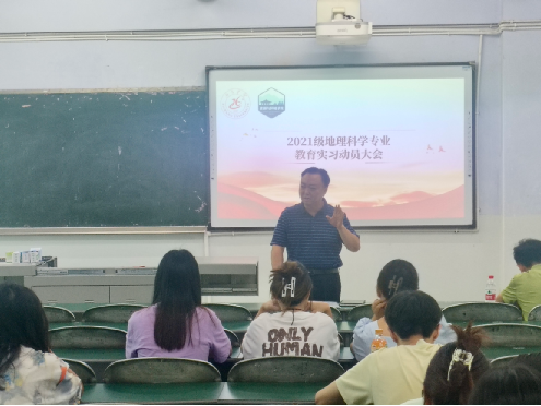 为有序推进师范生教育实习工作,提高教育实习效果,2024年9月18日下午3时,在2406召开2021级地理科学专业教育实习动员大会。资源与环境学院院长李海涛教授、学生科副科长陈建宾老师、辅导员周俊烈老师及21级地理科学专业全体同学参加会议。