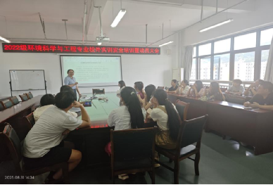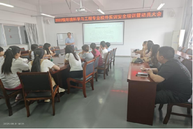 为切实提升学生实践技能,强化校外实训期间的安全意识与责任观念,确保实训工作顺利、有序、安全开展,女仆a片资源与环境学院2022级环境科学与工程专业于2025年8月31日在12教7楼会议室成功召开了2025年度校外实训安全培训暨动员大会。本次会议由环境科学与工程专业负责人陈韵竹博士主持,副院长王雪梅副教授及实验室主任孙劲副教授出席会议。