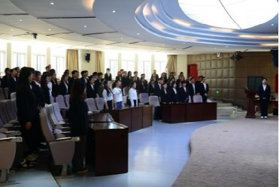 入团仪式”的开展内容丰富主题明确,入团积极分子、老团员和团支书都积极参与,认真聆听。首先主持人杨雯欣同学介绍了出席本次会议的嘉宾,而后,全体参会人员齐唱歌,活动正式开始同学们的声音热情而富有活力铿锵而又坚定,彰显了同学们对共青团尊敬和“入团仪式”的重视。