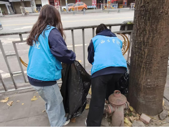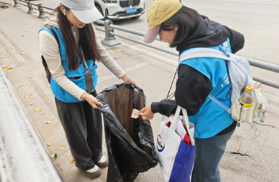 11月9日早上八点全体志愿者在十二教一楼大厅集合签到,准备相关物资。八点半,在组织者的带领下乘坐公交车前往活动地点,途中组织者给志愿者做一次简单培训并且进行分组,9点活动正式开始。活动期间,组织者时刻注意活动推进情况,根据实际需求灵活协调人员分工,同时持续做好安全警示工作。本次道路清扫志愿活动组内部采取协作模式,重点对人行道、绿化带及各类卫生死角的废弃物进行全面清理。各小组将收集的垃圾统一运送至指定集中堆放点,志愿者共同完成垃圾分类整理工作,严格区分可回收垃圾与其他垃圾,为后续环卫部门的统一处置提供便利。
