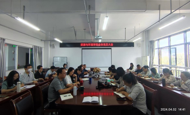 2024年4月2日,资源与环境学院教师党支部在格物楼7楼会议室组织召开党员大会暨“传承光荣红色基因,树牢总体国家安全观”主题党日活动,全体教师党员参加了会议。